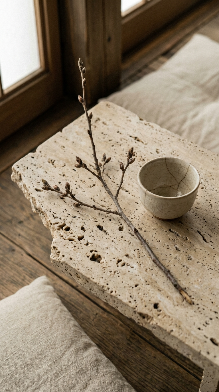 Naturalne naczynia z trawertynu, zaprojektowane, by trwać i towarzyszyć rytuałom przez lata — uzupełniane o wymienne Ishi Refill.